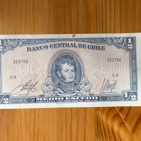 Seddel fra Chile. 5 Escudos, serie A23 fra 1962