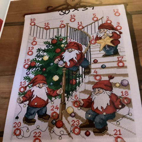Midtun kalenderen blir brodert på fin aida. Monteringen er inkludert i den oppgitte prisen. Det blir montert et stødig stoff som bakstykke. Beslagene kommer i tillegg til prisen, de koster kr 109,- pr stk. Jeg anbefaler to beslag. Kalenderen er ikke brodert, jeg broderer etter hvert som jeg selger.