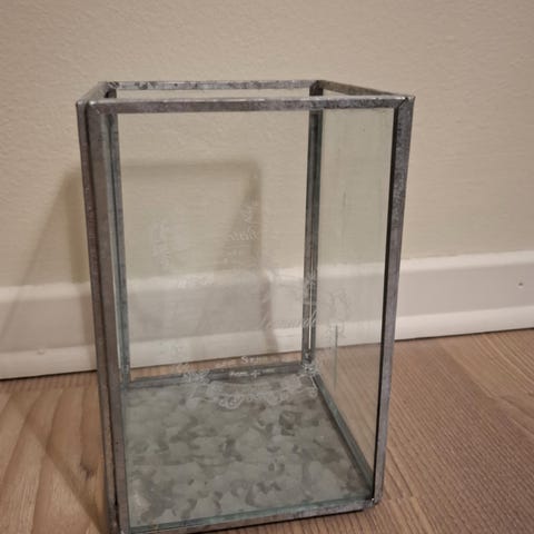 Flott stormlykt i glass.