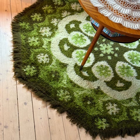 Håndknyttet teppe i ull. Str 70 x 109 cm Retro