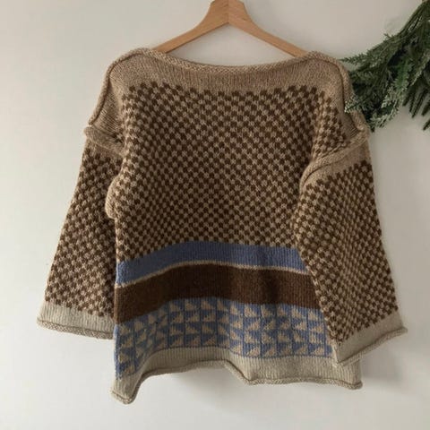 Solgt; Lekker, håndstrikket genser brunmelert selges 300kr + porto.