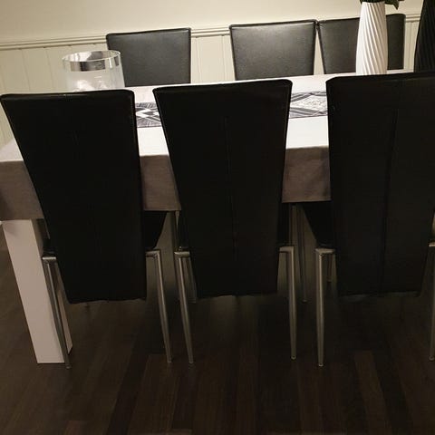 De er hele og fine, vi har brukt saueskinn i de, så det er veldig lite slitasje på sitte flaten.