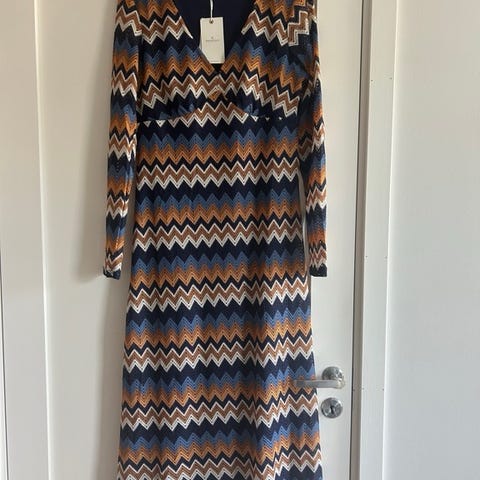 Myk og behagelig kjole med pent snitt. Grå med litt mønster. Utrolig fin på! Knelang. Veldig deilig å bruke tidlig vår, høst og vinter.