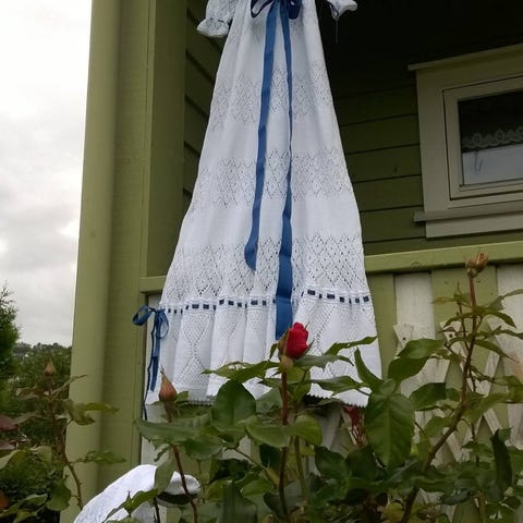 Hjemmestrikket dåpskjole leies ut. Inkl lue.