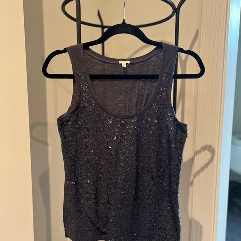 Mørkeblå, strikket paljett topp/kjole selges. Står Strl 36. Fra røykfritt hjem, men har katt. Noe bruksmerker kan forekomme. Selges som den er. Se bilder.