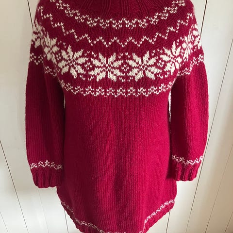 Villmarksgenseren Føyka selges. Den er strikket i et garnmateriale som gjør den tynnere enn "vanlig" Føyka.