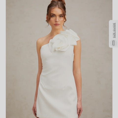 Tyll i kappene på skjørtet. Kan om ønskelig fjernes. Drapert. Off shoulders. Glidelås i rygg. Str Xs-S🤍💕