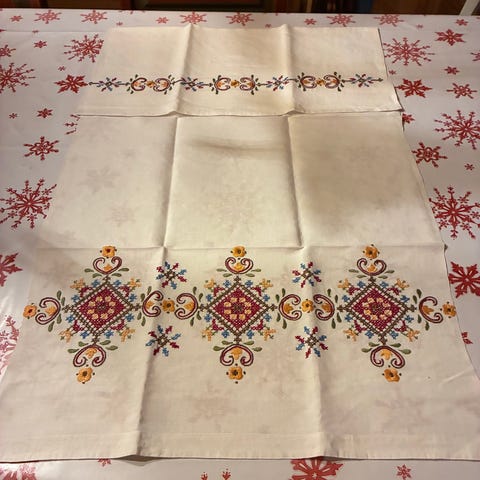 Er beregnet til løper og duk, klart til å sy på blonde / kantbånd.
