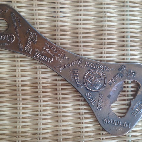 Retro, Brusopptrekker i kobber, med" skå"på mange språk, lang 23, 5 cm, kan sende,