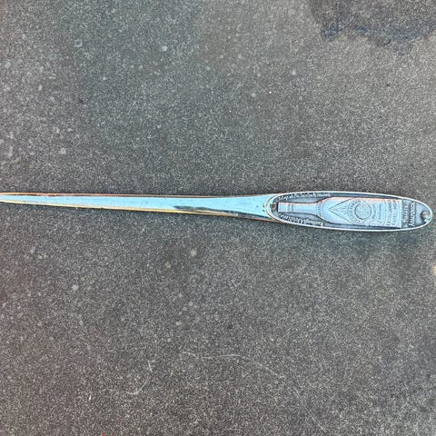 Gammel plastsak som ble brukt til å bære pakker fra butikken med reklame for Steen og Strøm. Lengde 14.5 cm.