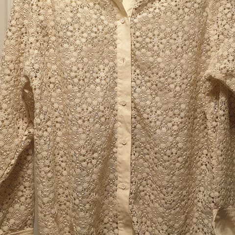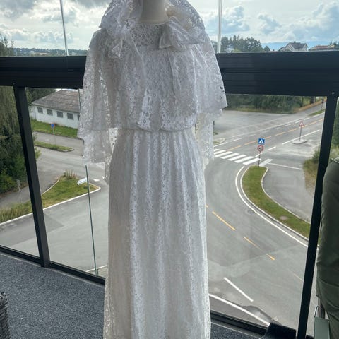 Skreddersydd skjørt i Duchess og blondebluse modell sydd