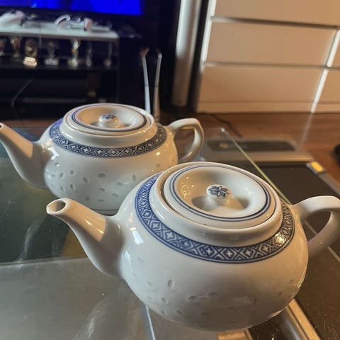 Romantiske dyp tallerkner fra Figgjo signert Matteau. Vi kjøpte dem i 1963. De er i god stand. Litt slitasje i forgyllingen rundt kantene. Har tatt to bilder der slitasjen er verst. Diameter 17,3.