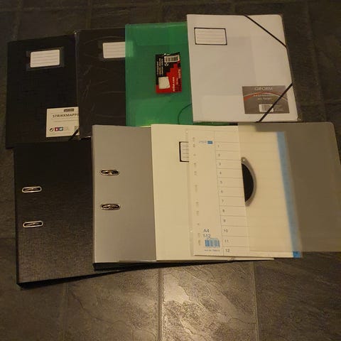 Ringpermer til A4 ark i diverse farger og tykkelser til salgs (over 220 stk). Pent brukt, i god stand. Noen har skilleark.