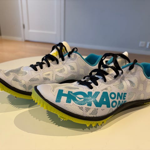 Hoka EVO piggsko. Kun brukt 1 gang. Strl 45 1/3. For 1500m og oppover ideelt sett.