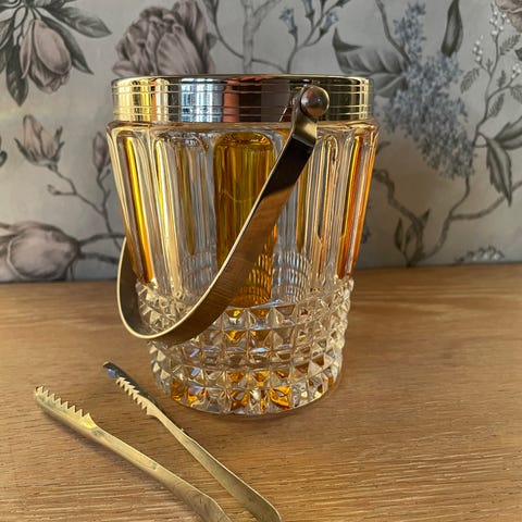Den store ser ut til å være av krystall (mistet glansen) og den lille parfymeflasken er av pressglass.