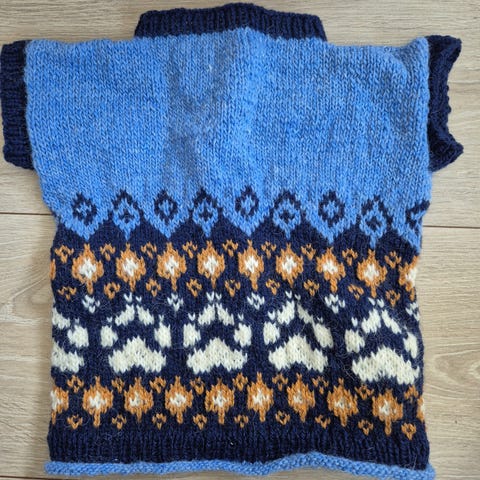 Hjemmestrikket Oslolue, strikket i Filcolana Arwetta. Aldri brukt.