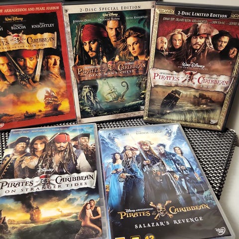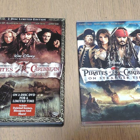 De tre første filmene om pirates of the Caribbean med Johnny Depp, selges samlet eller enkeltvis kr 25,- pr stk.