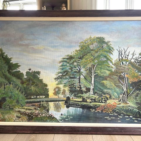 Stort maleri Tore Langebeck, « Ensom kvinne « full portrett! Last $