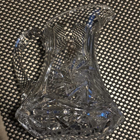 Krystall mugge. V-1L.Høyde - 13 cm, Diameter-11cm. Pris: 450kr. Kan sendes, kjøper betaler frakt.