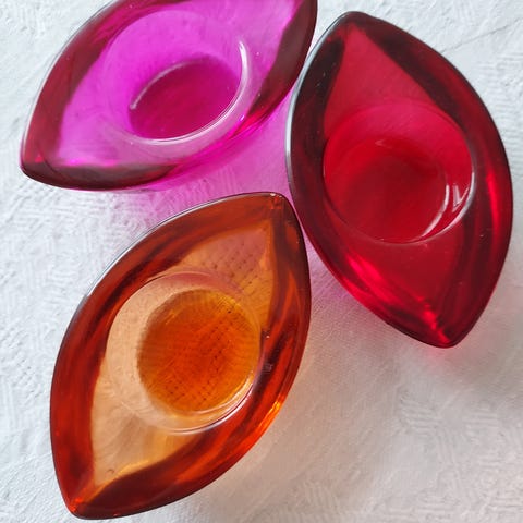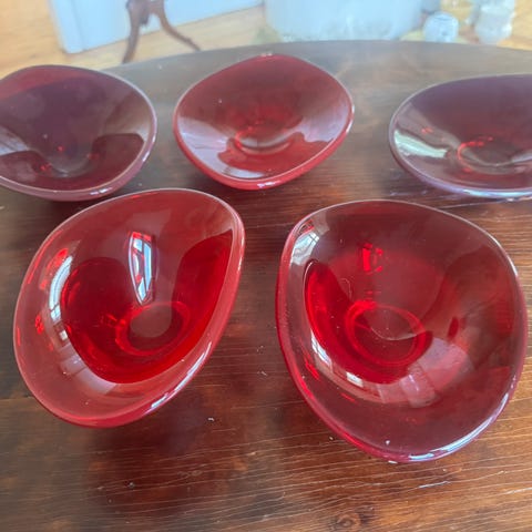 TO ELDRE RØDE GLASS SKÅLER