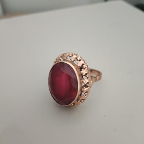 Ring i sølv 925 med rødbrun Agat, diam.: 19 mm.