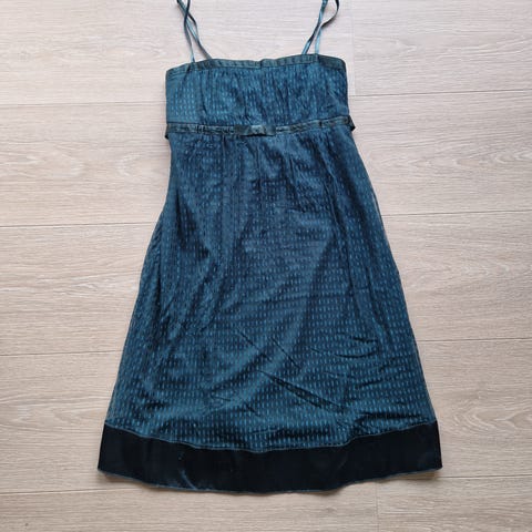 Størrelse M. Veldig fin kjole som kun har vært brukt 2 ganger, men ikke helt meg. Så håper den heller kan glede noen andre fremfor å bare henge i skapet.