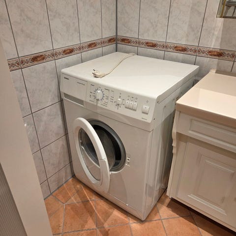 Fungerer greit. Er falt av en bit i gummien, som fører til at den kan lekke litt. Lekker spesielt ved vask av ullklær. Selges som den er.