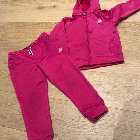 Pent brukt bergans to delt fleece sett. Lekker rosa farge. Bukse str 98, jakke str 104. Brukt av 1 barn.