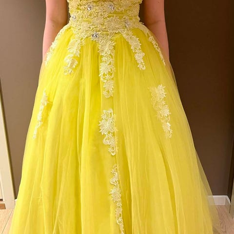 Nydelig ballkjole med flotte detaljer, og tilhørende sjal til ei ung dame, selges.