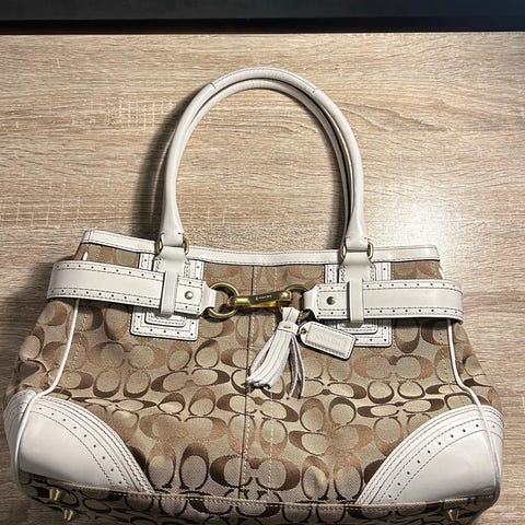 PRADA Natural Canvas Tan Leather Trimmed Bowling Top Handle Handbag, 2000. Founded by Mario Prada in 1913, Prada's flagship location opened in the Galleria Vittorio Emanuele II in Milan, the world's oldest shopping mall. By 1919, Prada officially became the "Official Supplier of the Italian Royal Household" and the brand would begin it's ten decade metamorphosis into Italy's premier luxury designer brand. Prada's fashionable bags became highly sought after over the years reaching their peak in the Early 2000's.