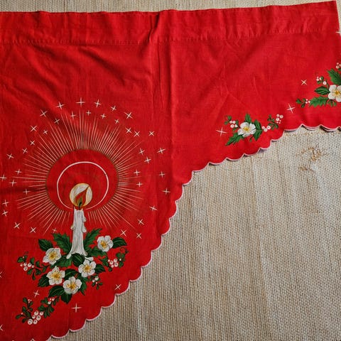 2 kapper. Mønstret med burgunder(vinrød) rysjkant.