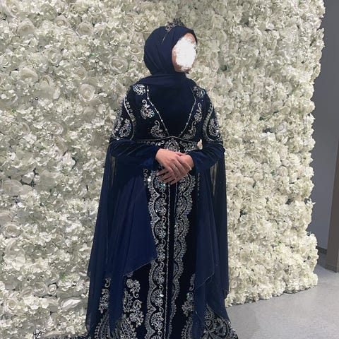 Hennakjole/ kaftan. Brukt bare en gang. Strørrelse 38, passer også str 40. I fargen burgunder. Kjempe fin kjole med gull steiner. Kjolen kan brukes med kaftan eller uten. Brukes til fest eller hennafesten.