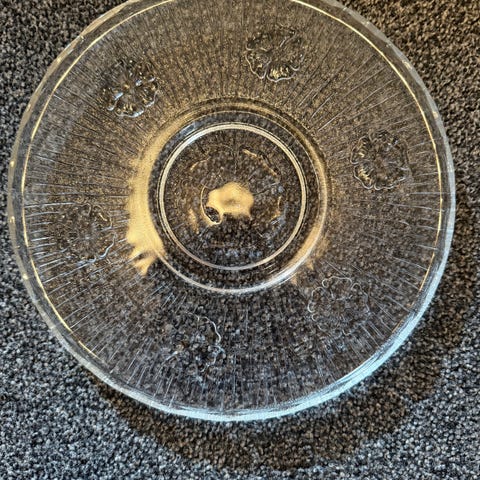 Retro glassfat med blåskjær. Diameter 29cm. Kant høyde c. 3cm