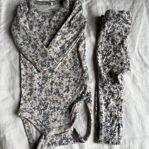Pent brukt todelt pysjamas i bambus viscose fra Lilleba i str 110/116. Blomstrete genser og bukse. Kjøper betaler porto.