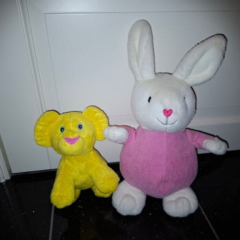 De kjente og søte bamsene til Karsten og Petra. Lite brukt og i god stand. Frøken kanin har til og med en poncho som ørene stikker ut av 😉 12-åringen selger leker hun ikke bruker lengre. Hentes på Sandnes eller fiks ferdig!