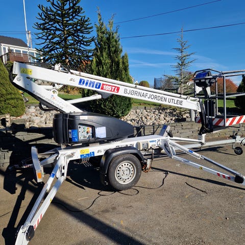14 m arbeidshøyde , 230 v , leies ut kr 800.- pr dag , evt 1400.- for helg og 3400.- for en uke. Priser er ink mva. Liften er sertifisert og leveres med fallsikringssele.
