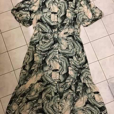 Flott lang kjole med splitt i rygg og i sidene på skjørtet. Str. xl og måler 53 cm under armene. Kun brukt en gang.