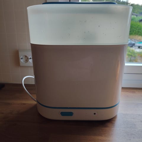 Så å si splitter ny dampsterilisator til flasker, smokker, skjeer og annet du måtte ønske å sterilisere. Kun brukt et fåtall ganger, deretter lagret vekk i kartongen sin. Er å regne som ny.