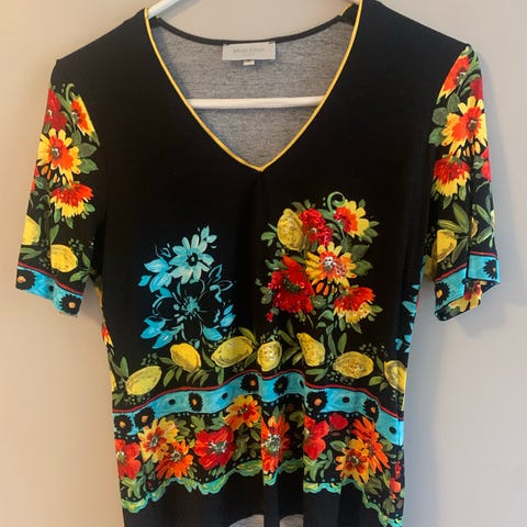 Veldig fin, grå topp fra Passport med Pets Rock motiv med hund som Andy Warhol. Ubrukt. Transparente paljetter og trykk av motivet på dem foran. Str. 34, lengde ca. 62 cm og bredde over bryst/hofter ca. 41/42 cm. Myk og behagelig å ha på. Selges fra et røykfritt hjem. Prisen er satt! Frakt med Posten kommer i tillegg hvis den skal sendes (ikke Fiks ferdig). Ellers hentes/møtes i Oslo/Lysaker.
