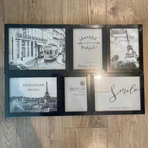 Plastlommer til å ha bilder i og henge opp. Tolv lommer i hver, dvs at om du henger dem så du ser begge sider ta de totalt 24 bilder. Bildene kan være opptil 10 x 15 cm.