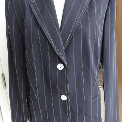Drakten er lite brukt. Feminin i snittet av jakken, bukse med lommer. Behagelig stoff i poliester og viskose.