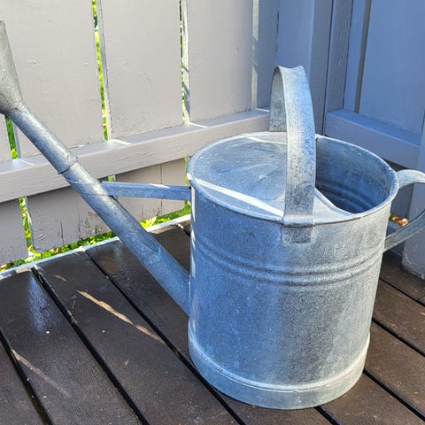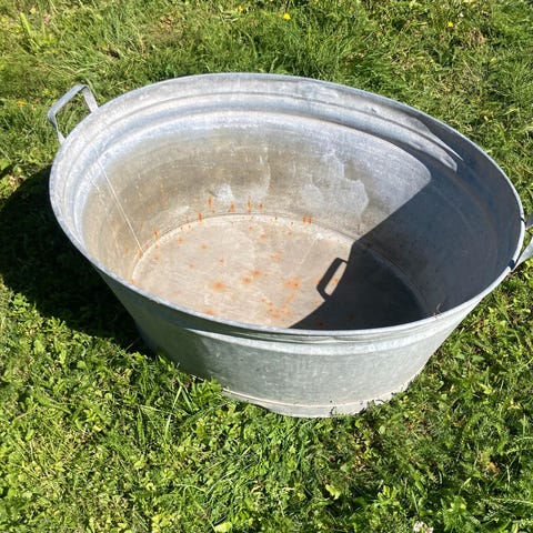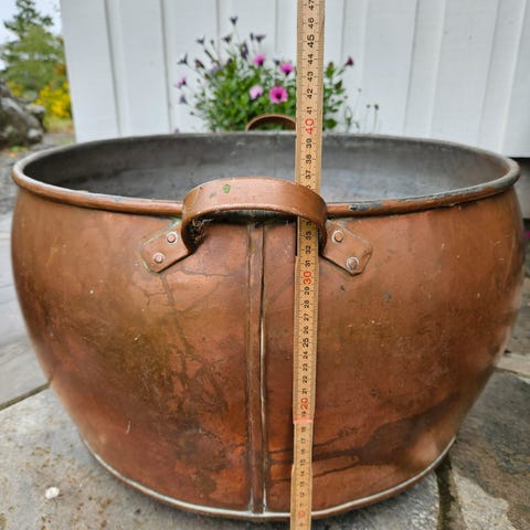 Gammel Høyang sinkkjele. Diameter 34 cm, høyde 30 cm, 27 liter.