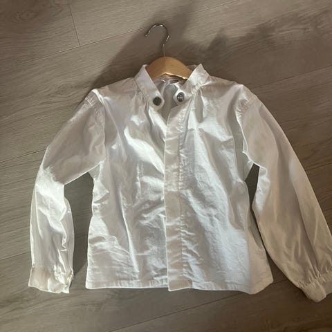 Pent brukt basic bluse/genser med krage og knepping i rygg str 110 fra Memini. Kjøper betaler frakt.