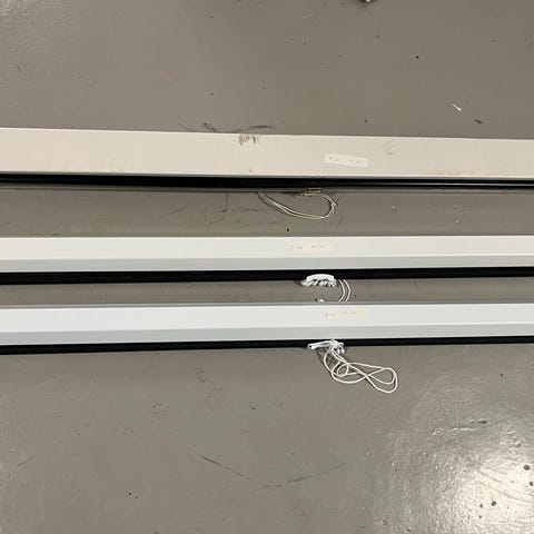 Lerretet er 2,5m og er med 2 fjernkontroller til (ser ut som nytt). Lerretet er ganske tungt så det må være godt med mothold bak. Går inn i vanlig bil hvis bakseteryggen kan legges ned.
