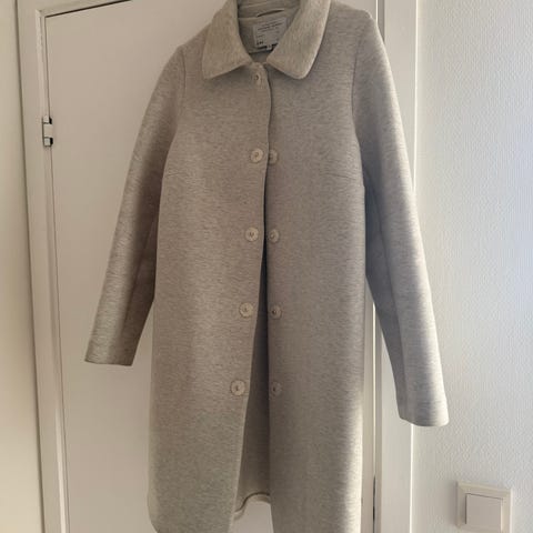 Elegant, pent brukt kåpe i str 40. Plagget er laget av bomull/polyester, har A-linjeformet fasong med dobbeltspenning. Kåpen ble kjøpt på H&M i 2017. Kan levere i Oslo. Sender mot at kjøper betaler porto.