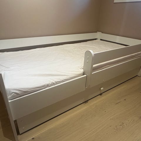 Barneseng Brukt veldig kort Selges med madrass.Ingen skade eller annet.Kjøpt til barnebarnet mitt da han var på besøk hos oss.Betalte 3800kr.