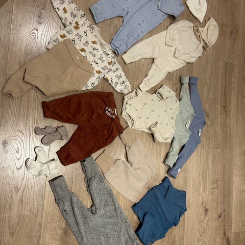 Div klær i str 50 og 56. (Mest i 56) Inkl en strøken Lillelam sparkebukse.