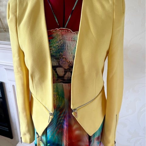 Nydelig lys gul jakke fra Joseph Ribkoff. Bryst 47x2, lengde 92.