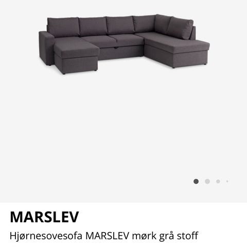Jysk 3-seters sofa med stofftrekk. Sofaen kan enkelt gjøres om til seng. Sete- og ryggputer er skum. Ben i massiv bjørk. Sofaen har oppbevaringsrom og kan speilvendes. Liggemål er 140x195 cm. Mål: B230 x H83 x D88/150 cm.