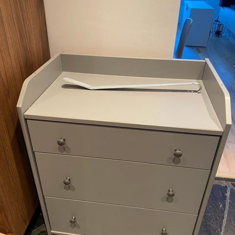 Brukt Ikea kommoden, noen flekker og brukt merker, en planke brukket.